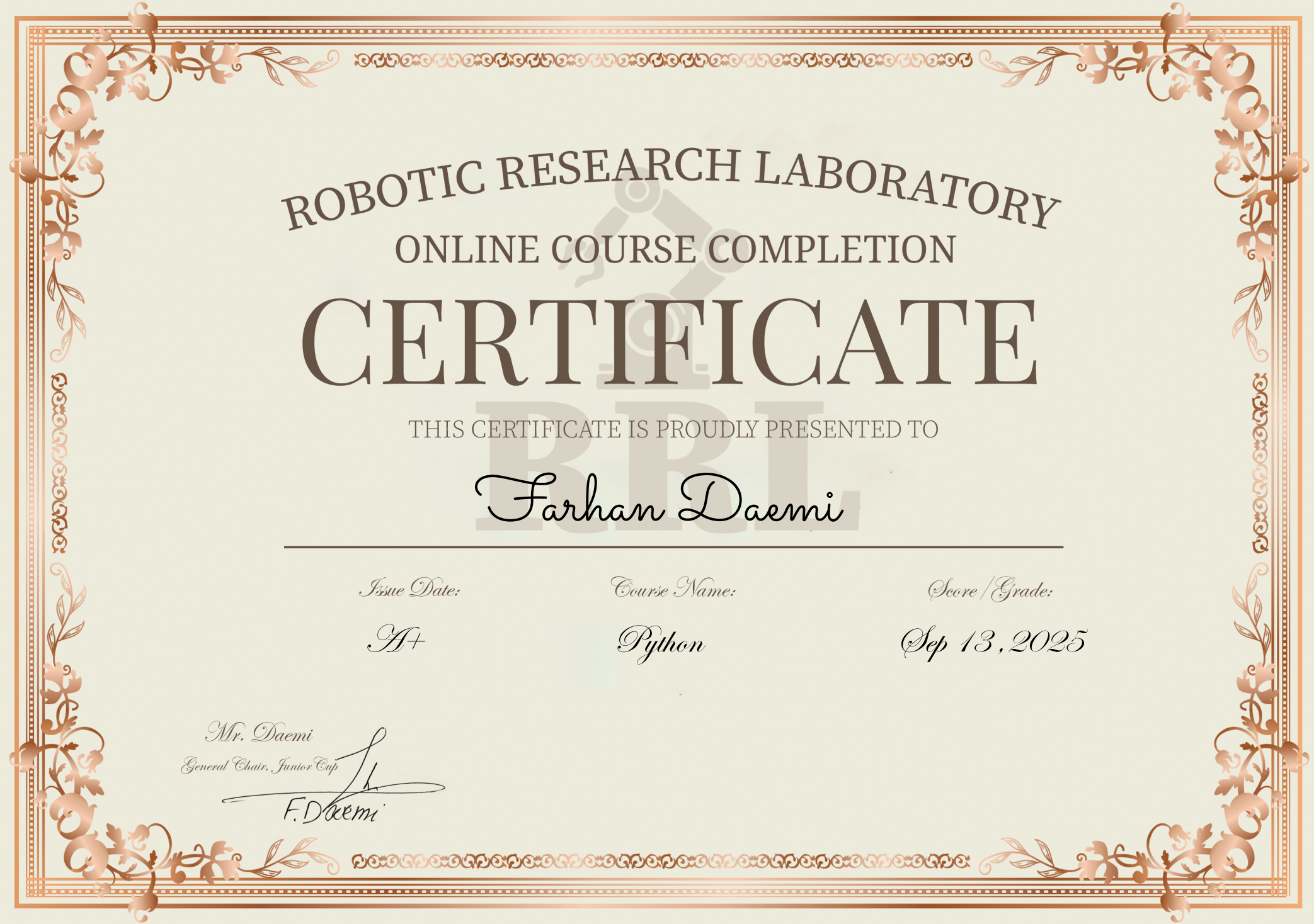 پس از اتمام دوره گواهی پایان دوره به صورت اتوماتیک با ذکر نمره/امتیاز شما در این دوره در اختیار شما قرار میگیرد. نسخه فیزیکی این گواهی برای شرکت کنندگان پست میگردد. نمونه این گواهی در تصویر زیر قابل مشاهده است.