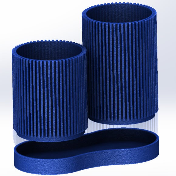 ست گلدان دو عددی با زیرگلدانی | طراحی مدرن و پرینت سهبعدی با ABS مقاوم